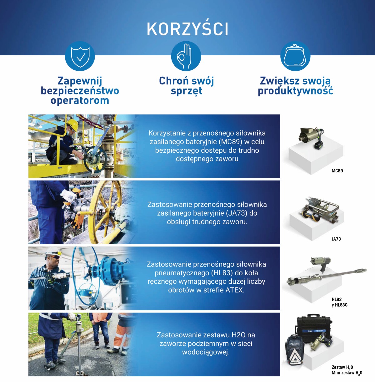 MODEC specjalizuje się w przenośnych urządzeniach do otwierania i zamykania wszystkich typów zaworów, które stanowią przełom w ręcznej obsłudze instalacji przemysłowych. Ergonomiczna i bezpieczna konstrukcja znacząco zwiększa wydajność pracy operatorów, eliminując konieczność stosowania kosztownych i skomplikowanych systemów silnikowych.